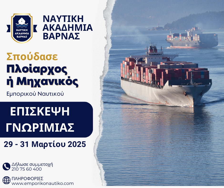 Εαν η επιλογή σας είναι να σπουδάσετε Πλοίαρχος ή Μηχανικός Εμπορικού Ναυτικού, τότε κλείστε θέση ΤΩΡΑ για το ταξίδι γνωριμίας που θα πραγματοποιηθεί στη Ναυτική Ακαδημία της Βάρνας από τις 29 έως 31 Μαρτίου 2025.